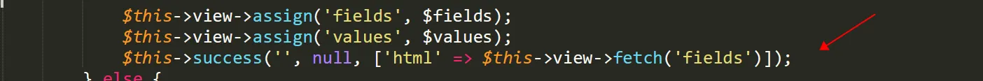 定义了选择不同的栏目,就通过ajax方式调用cms/archives/get_channel_fields。这里使用了$this->success方法